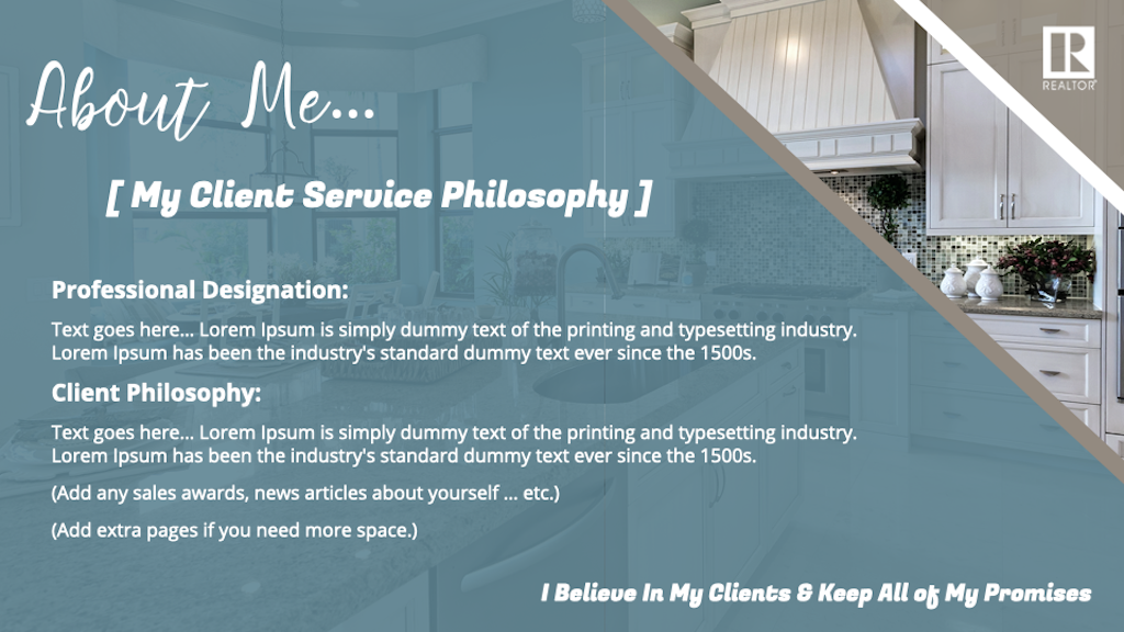 The '12 Reasons Why To List With Me' listing presentation are copyright of Achieve Ace Ltd. RE/MAX is a copyright & trademark of RE/MAX International. Century 21 is a copyright & trademark of Century 21 Real Estate LLC. Coldwell Banker is a copyright & trademark of Coldwell Banker Real Estate LLC. EXIT Realty is a copyright & trademark of EXIT Realty Corp. International. ERA is a copyright & trademark of ERA Franchise Systems LLC. Keller Williams is a copyright & trademark of Keller Williams Realty, Inc. Berkshire Hathaway HomeServices is a copyright & trademark of HomeServices of America Inc. Royal LePage is a copyright & trademark of Brookfield Real Estate Services Fund. The above companies have not reviewed or approved the 'company branded' listing presentation designs above, but only agents employed with these companies who have purchased this presentation. REALTOR® is a is a copyright & trademark of the National Association of REALTORS ®. All other trademarks, service marks, trade names and logos appearing on the site are the property of their respective owners.